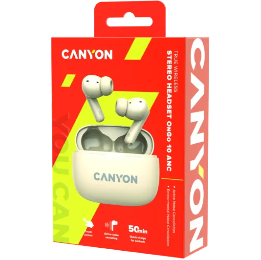 Have you already tried true wireless earphones? There is a chance you won’t look back with Canyon OnGo 10 earbuds. With the energy-efficient Bluetooth 5.3, they offer long playtime and stable connection to your device even if you’re not close. Perfect for music and calls thanks to four microphones: active noise canceling ensures you hear what you want to hear. Besides, it is activated automatically in-call. OnGo 10 earbuds are controlled by touch and have a voice assistant to inform you about the status of your earphones. The case supports Quick Charge technology. You can get a full charge for your earphones in just 50 minutes. Elegant and ergonomic, these TWS earphones do look great in any color: black, deep blue, or beige. We added earcaps in three sizes to make the fit ideal for you. Pick one today and bring joy to your ears!
